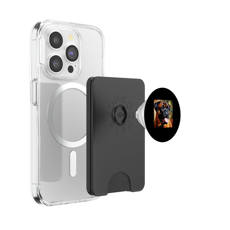 - Bedruckte Oberseite ist austauschbar. Schließe und drehe, um die Oberseite mit einem neuen Design aus anderen kompatiblen PopGrip-Modellen zu tauschen.