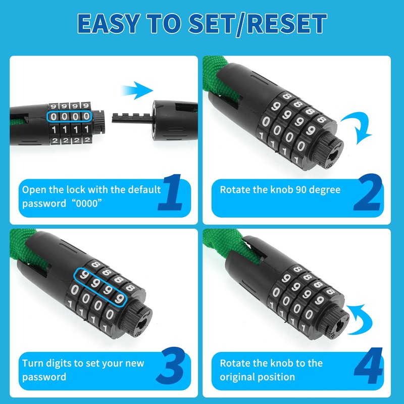 - Wide Application Suitable for various bike types and situations such as urban commuting, outdoor excursions and leisurely rides, this combination lock provides customizable protection for cyclists of any level.