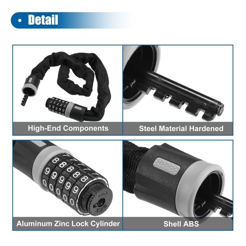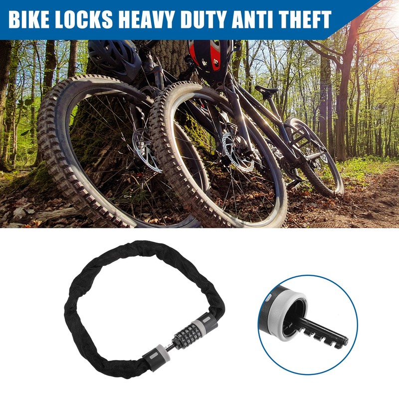 Chain lock is cut resistant and uses security chain links to prevent theft.