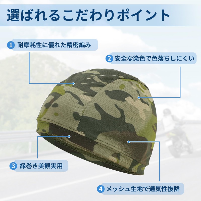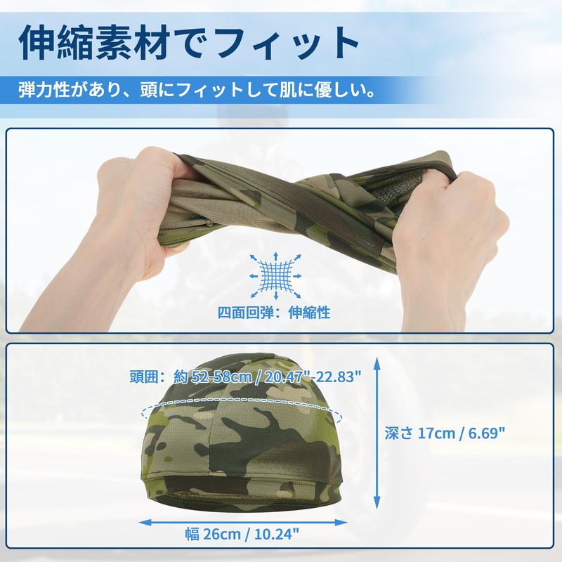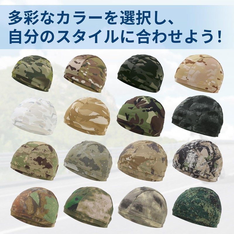 [BULLSPANN] サイクルキャップ インナーキャップ ヘルメット 自転車 バイク 帽子 冷感 通気性 吸汗 速乾 汗止め ライニング 登山 作業 男女兼用 ジャングル迷彩