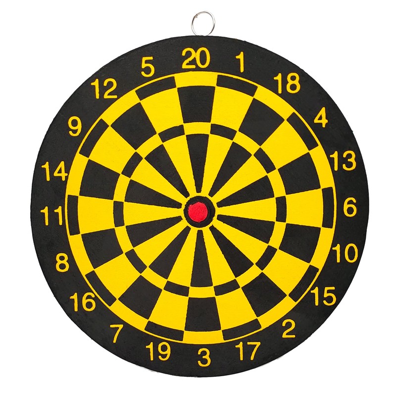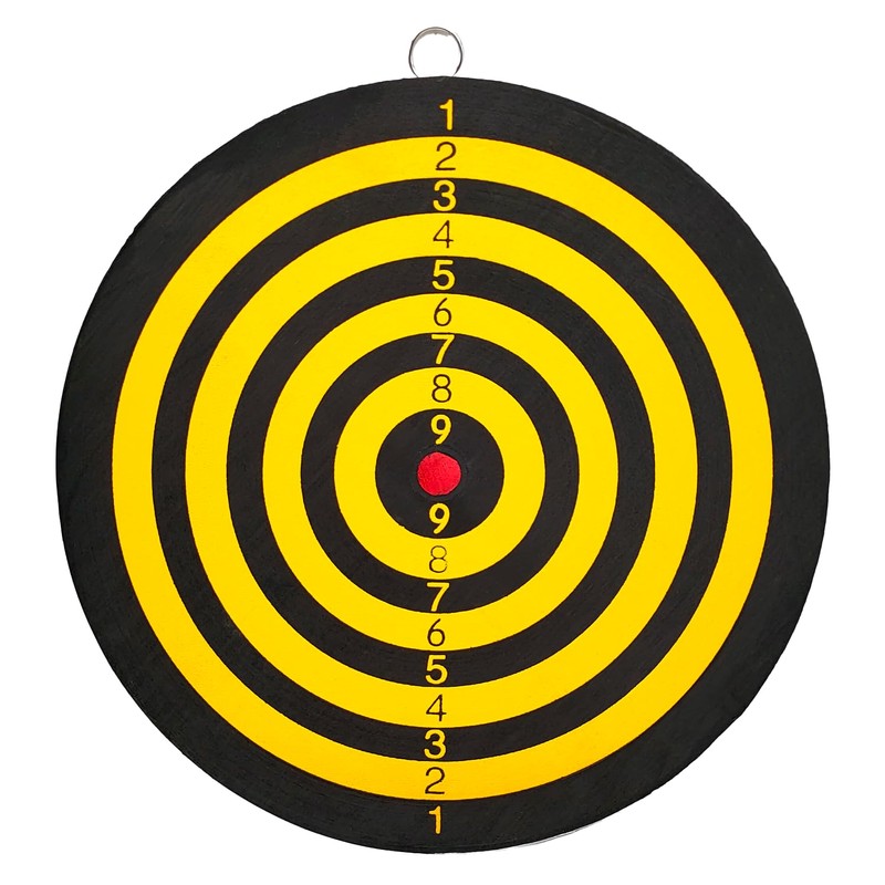 BullTek Small Dart Target Game 22.5 cm Target Shooting Board Double-Sided Sign Shooting for Adults and Children with 2 Steel Arrows DartBoard Yellow Black Round House Wall Hanging, Bers225