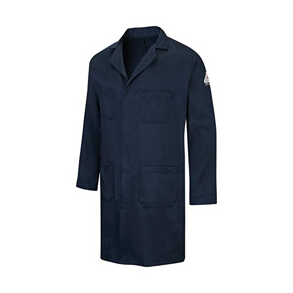 Bulwark FR mens Fr Concealed Snap-front medical lab coats, Navy, X-Large US