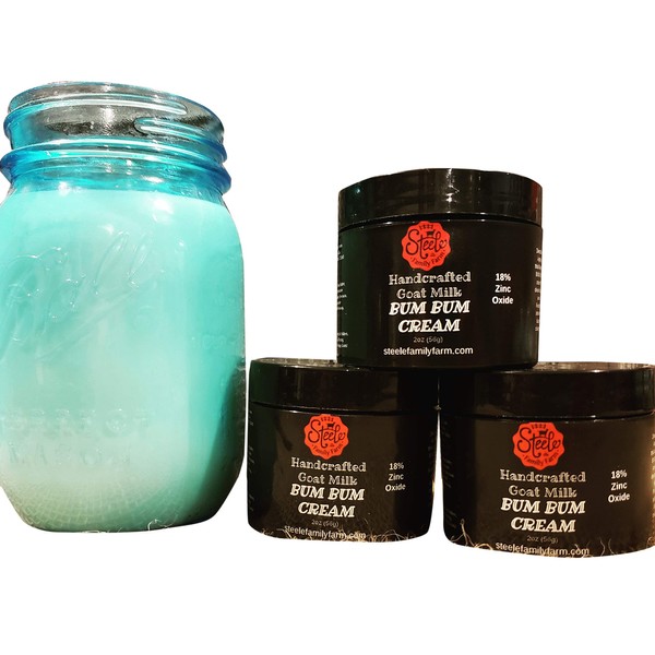 Steele Family Farm’s BUM BUM CREAM is made using natural ingredients and topped off with goat milk taking advantage of the natural healing properties. 2oz