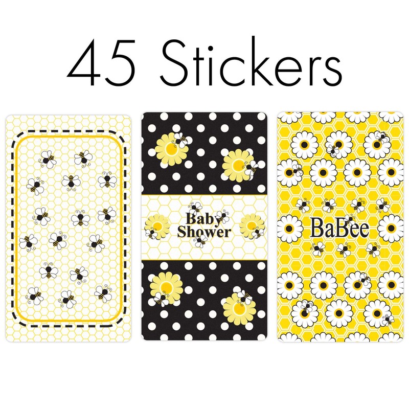 • 45 STICKERS: bumble bee baby shower candy wrapper stickers made to match your bee baby shower decorations.