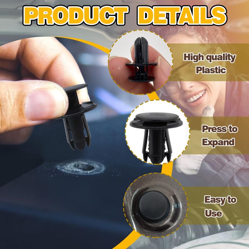 - Selling Point 5: Designed for easy installation, these bumper clips feature a simple push-in design: no special tools required—just insert the clip into the appropriate hole and push to lock it in place. Whether performing DIY repairs or professional bodywork, these fasteners offer a secure, hassle-free solution for maintaining vehicle integrity and appearance. A must-have addition to any Canadian automotive repair kit.