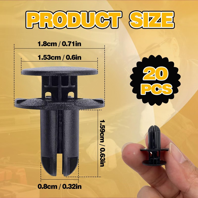 - Selling Point 1: This bumper clips set includes 20 plastic push retainers designed as a direct replacement for OEM 86595-2T500: also suitable for securing fender liners, bumper covers, and splash shields. Each clip features a head diameter of 18mm and a shank length of 14mm, fitting 8mm holes perfectly. The ample quantity ensures Canadian drivers have a reliable stock for maintenance, repairs, and upgrades.
