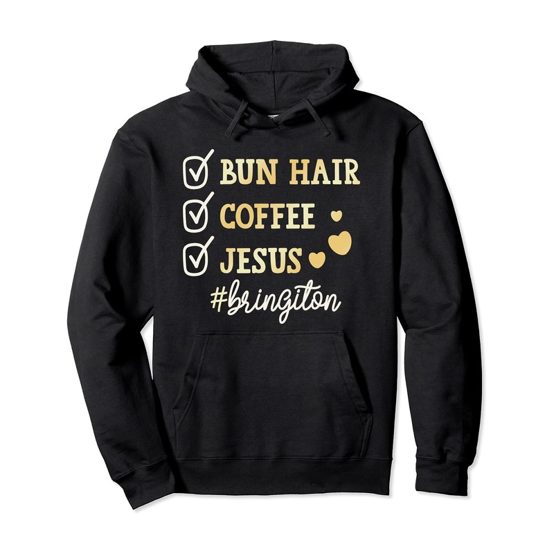 Bun Hair, Jesus, Coffee Pullover Hoodie