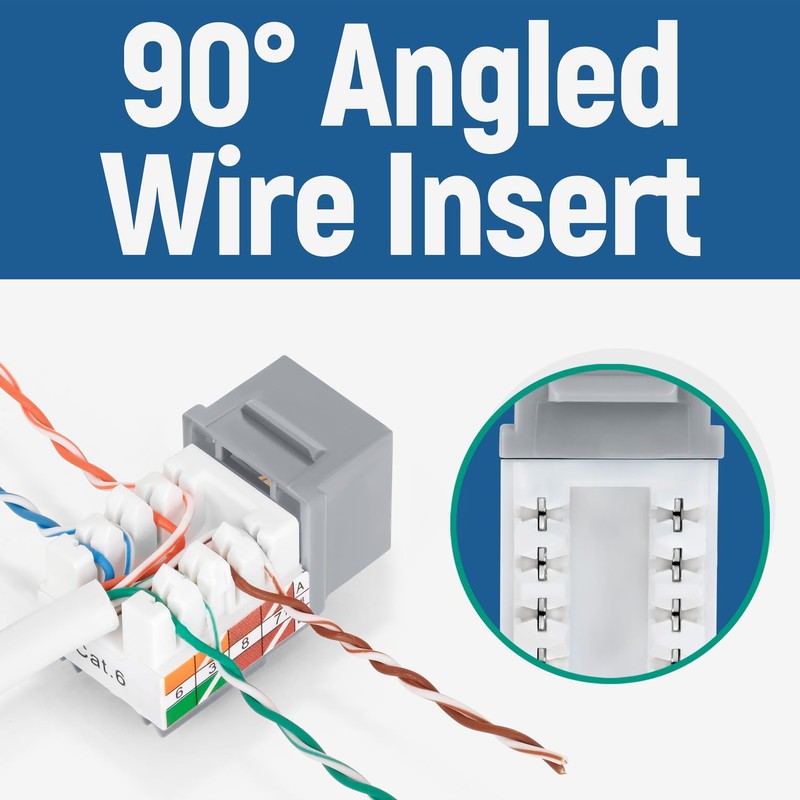 - Product 1 - 90° Angled CAT6/5e Keystone Jack in Grey - Slim Profile RJ45 Ethernet Connector - Compatible with 90° Angled Speed Termination Tool - easyJACK (B094WB91H3) - 50-Pack