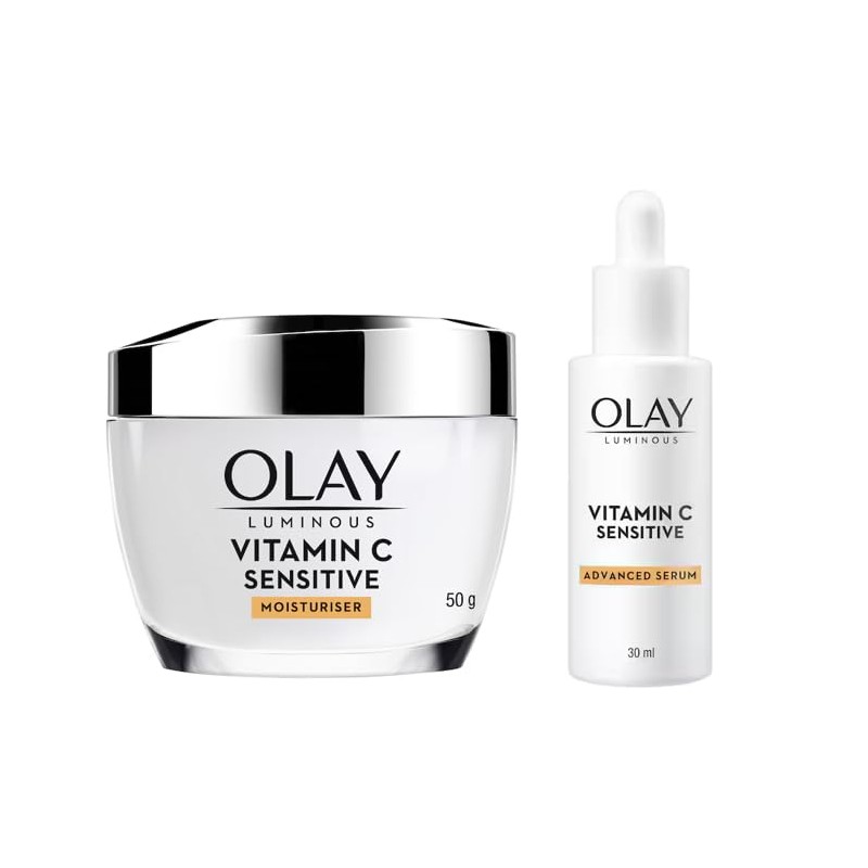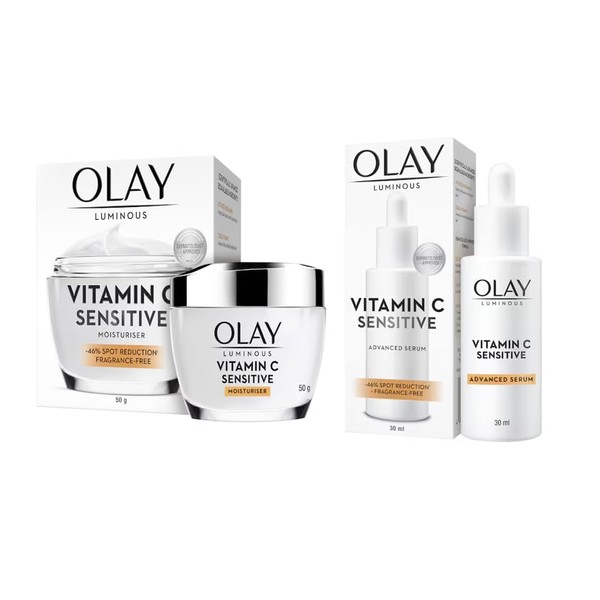 - DUAL PACK: Bundle includes Olay Luminous Vitamin C Sensitive Moisturiser (50g) and Advanced Serum (30ml) for comprehensive skincare