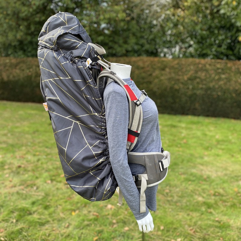 BundleBean - Babywearing All-Weather Waterproof Sling and Baby Carrier Cover (Gold Geometric) - Rain Cover with Fleece Lining, Universal Fit, Fits Front & Back Carriers, Protection from Rain & Wind