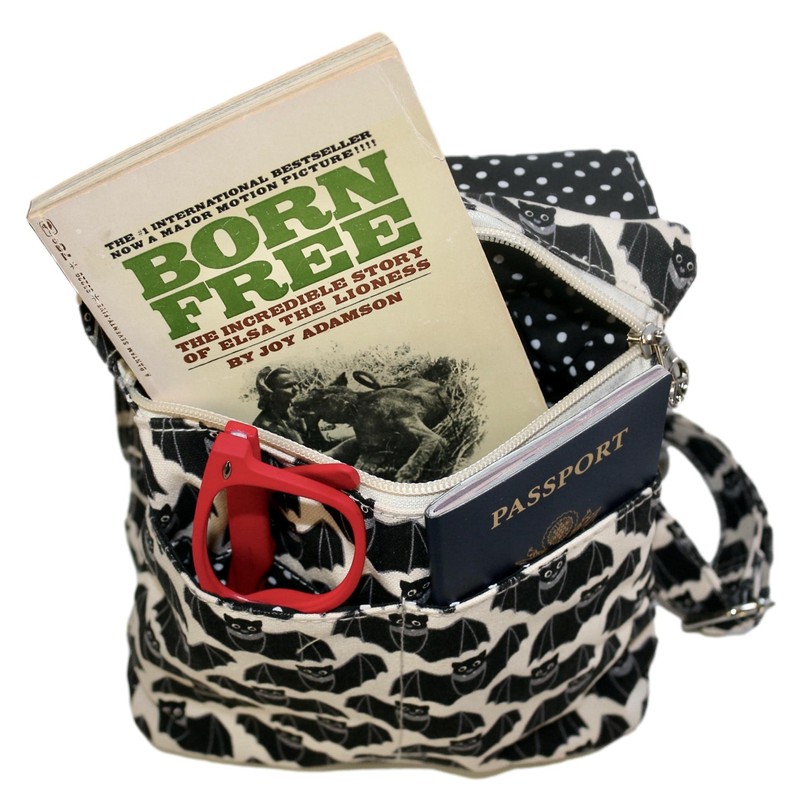 - Cute polka dot lining. Outer zipper pocket on flap. Flap closure with two pockets under flap