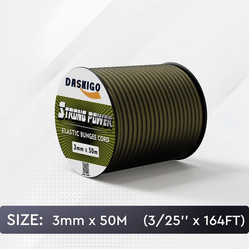 Bungee Cord Elastic Shock Cord, 3mm x 50M Army Green