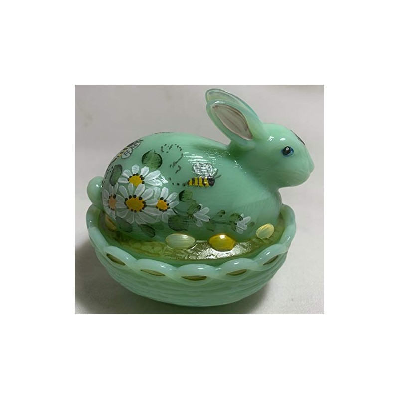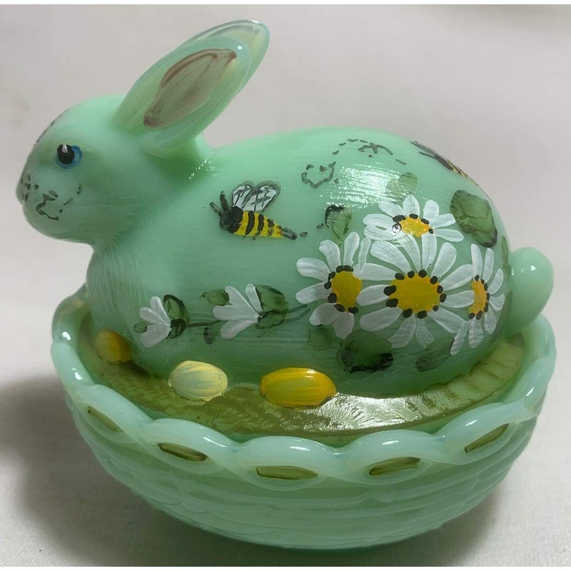 Bunny - Covered Easter Rabbit Dish - Decorated - American Made - Mosser Glass USA (Jade Handpainted)