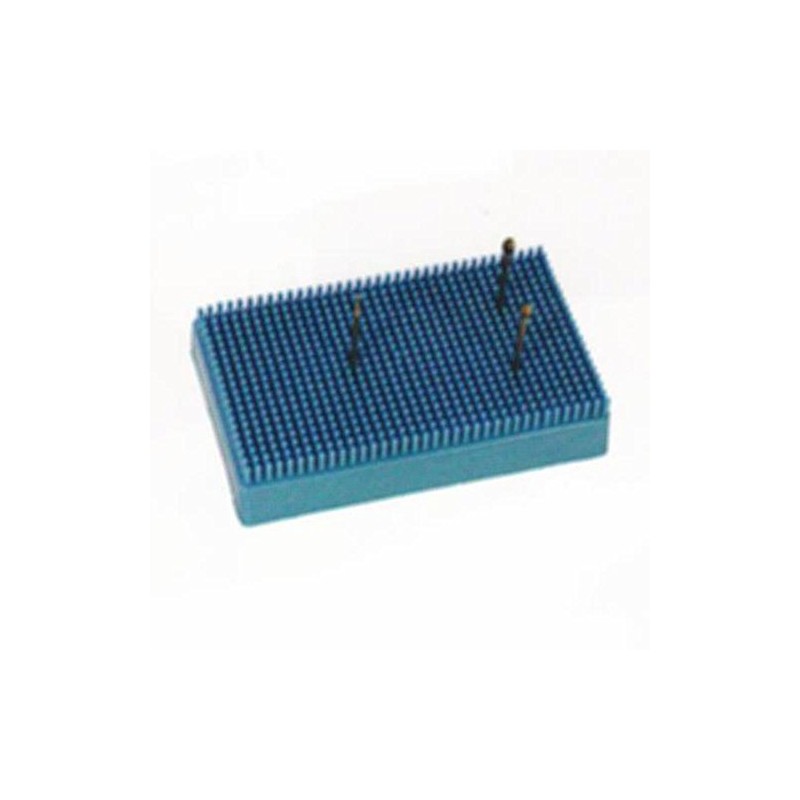 Bristle block holds burs, mini buffs, brushes and any 3/32" shank attachments. Injection-molded plastic measuring 3" x 5" x 7/8". Perfect organizer for any bench..