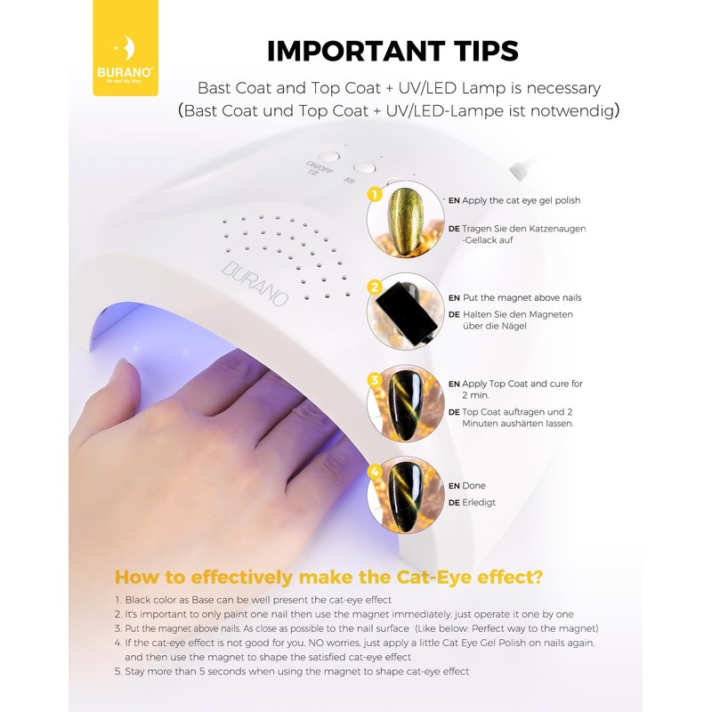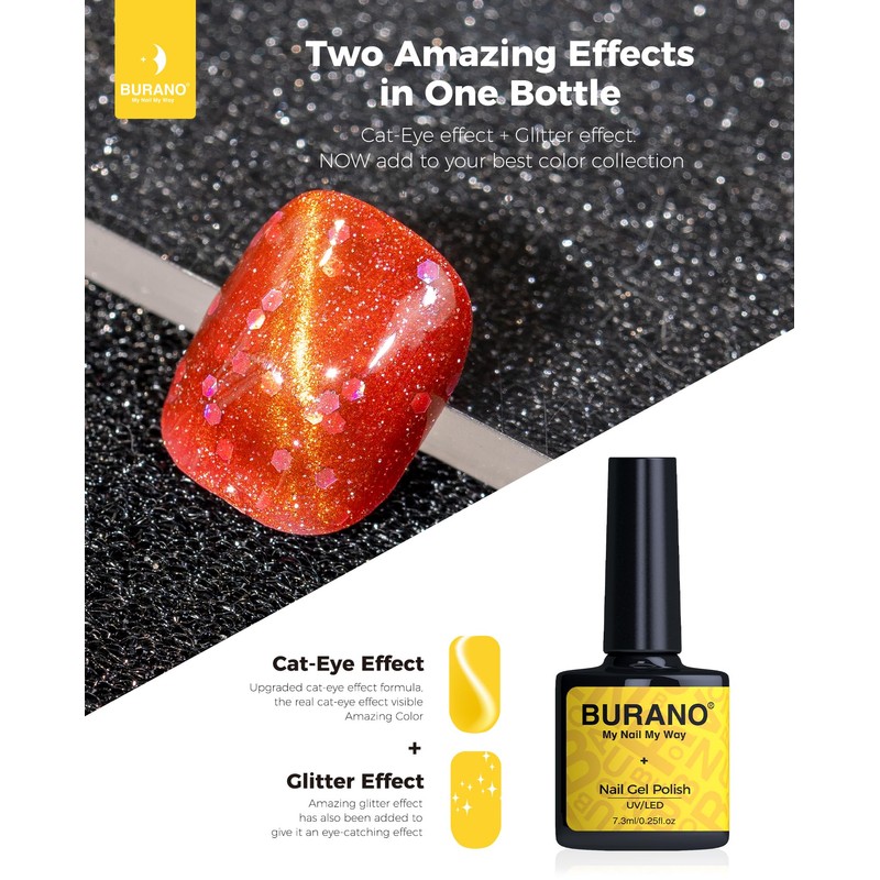 - 💙【Upgraded version cateye gel polish】We have updated our cats eye gel nail polish, makes them more shining and smoother. cats eye gel nail polish with glitter effect. You'll love it once you use it. BURANO magnetic nail polish gel is the best cats eye gel nail polish you haven’t ever used before.