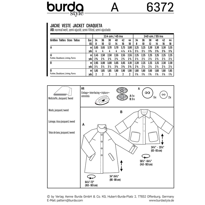 • Version A: short coat with stand-up collar and straps on the sleeves