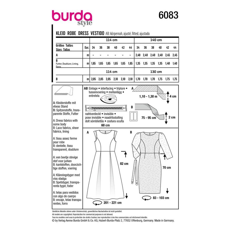 Burda Style #6083 Sewing Pattern Dresses Variations to Sew Yourself | Ladies Size 6-18 | Sewing Level: Medium