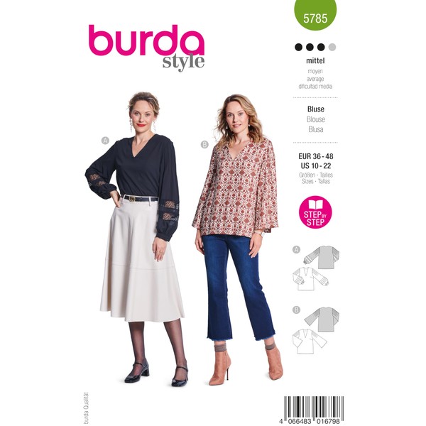 Burda Style Sewing Pattern Women's Long-Sleeved Blouse Size 8-20