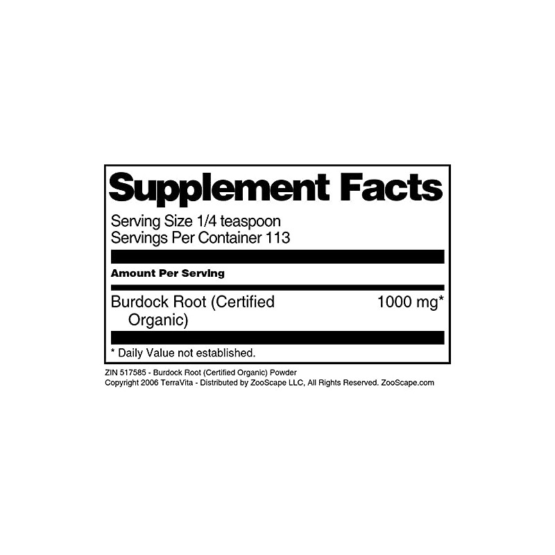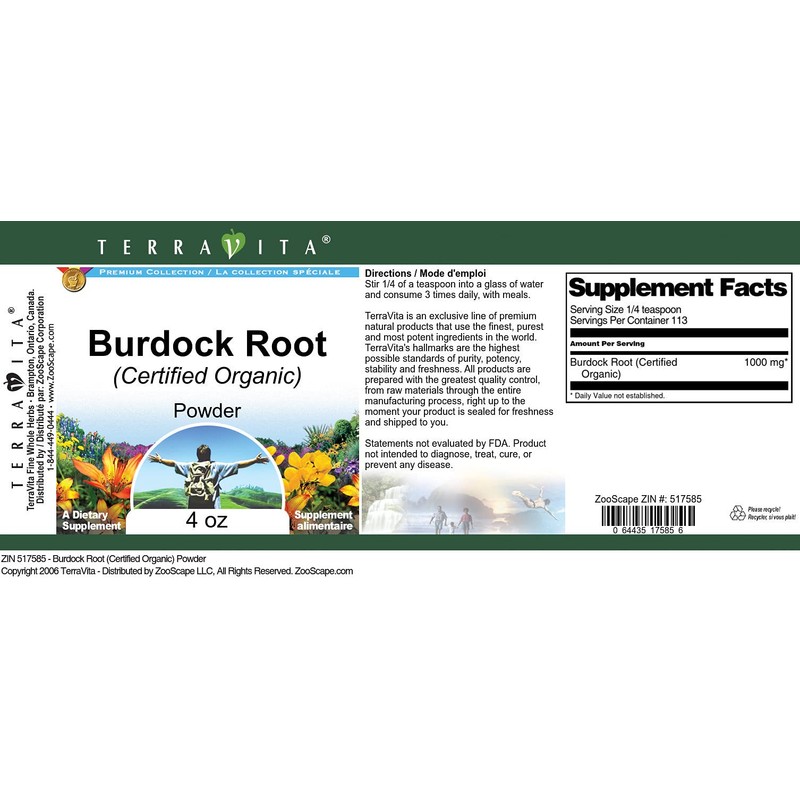 - Burdock Root (Certified Organic) Powder (4 oz, ZIN: 517585)