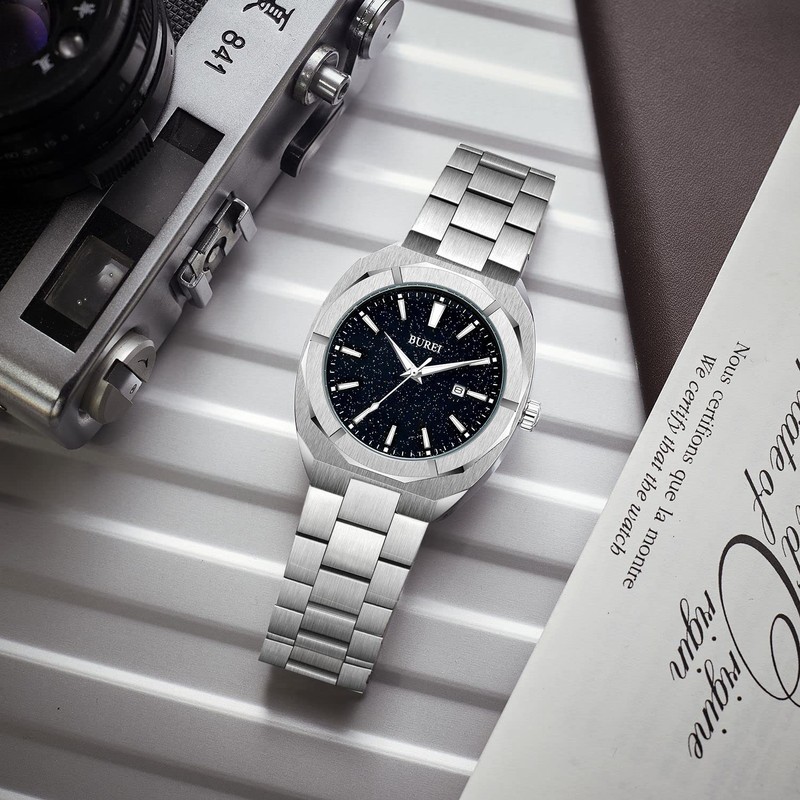 - BUREI watch gives it a simple and stylish look and feel overflowing with luxury black dial and a day fashion watch for men. This is a men's brand watch that shows the status of men, so it is recommended for men of all ages. It can also be used as a gift for a fashionable husband or an elderly father