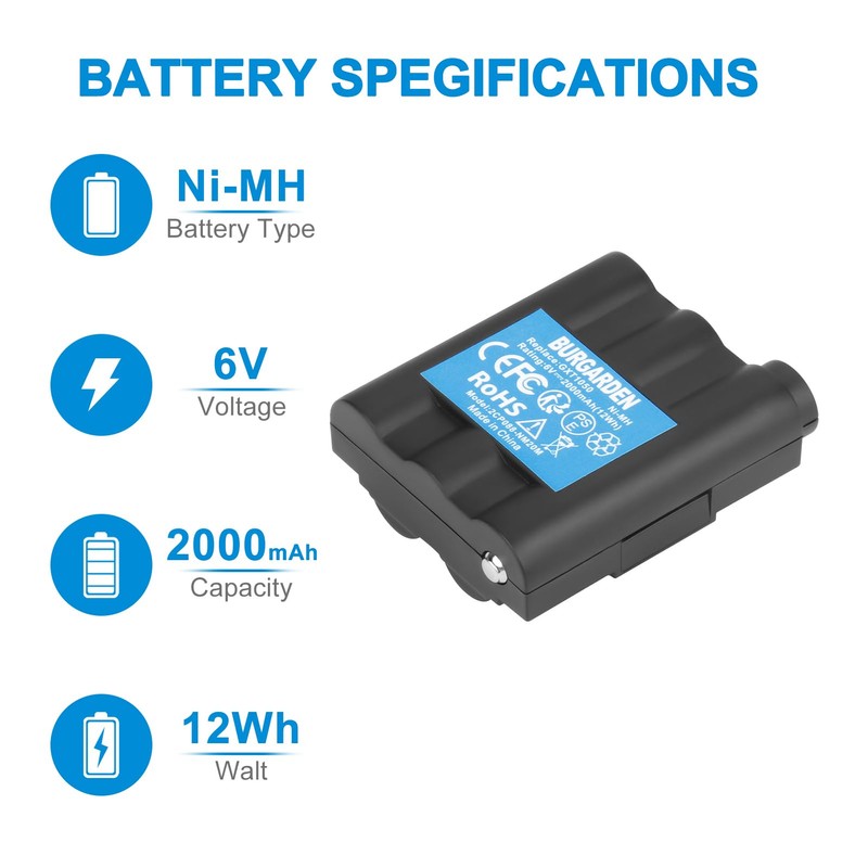 BURGARDEN 6V 2000mAh Ni-MH Replacement Battery for Midland GXT1000 GXT1050 GX...