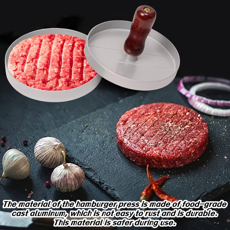 - Super durable: Food-grade aluminum, the mold of this burger press is made of thick die-cast aluminum alloy and coted with food safe material, the handle of this burger press is detachable,can suffer accident falling without being broken.