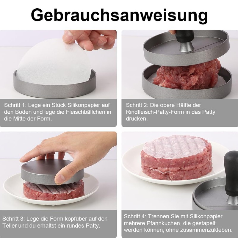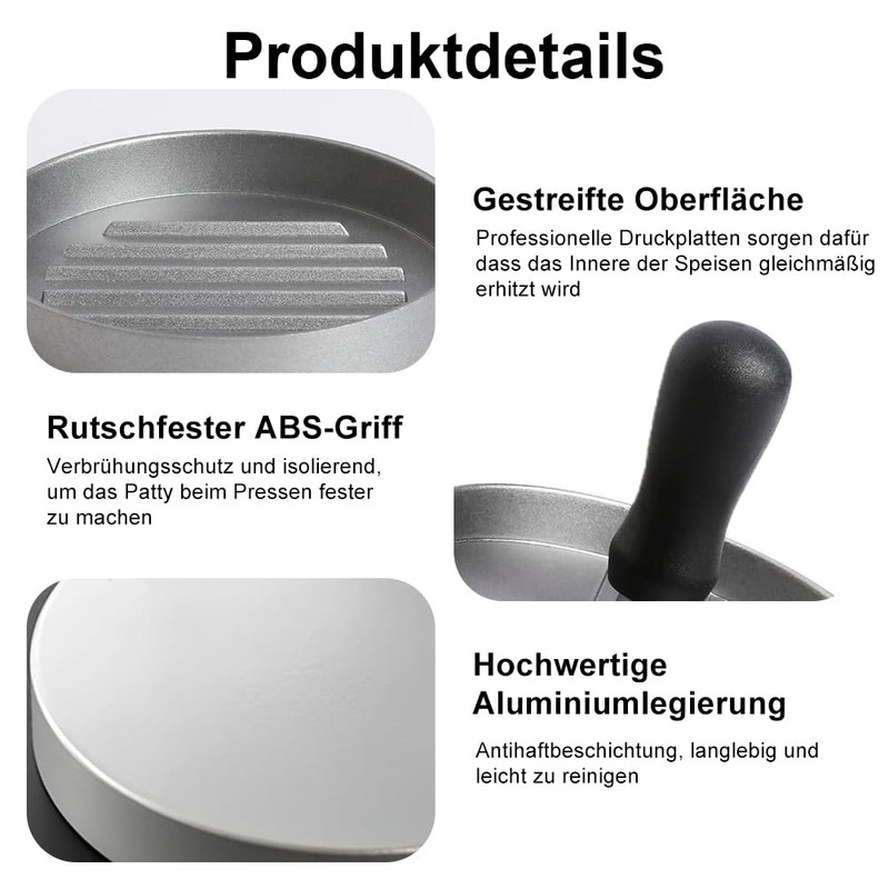 • Robust and safe: Made of high-quality, food-safe aluminium alloy, this burger press is extremely durable and harmless to health. Perfect for anyone who values quality in the kitchen.