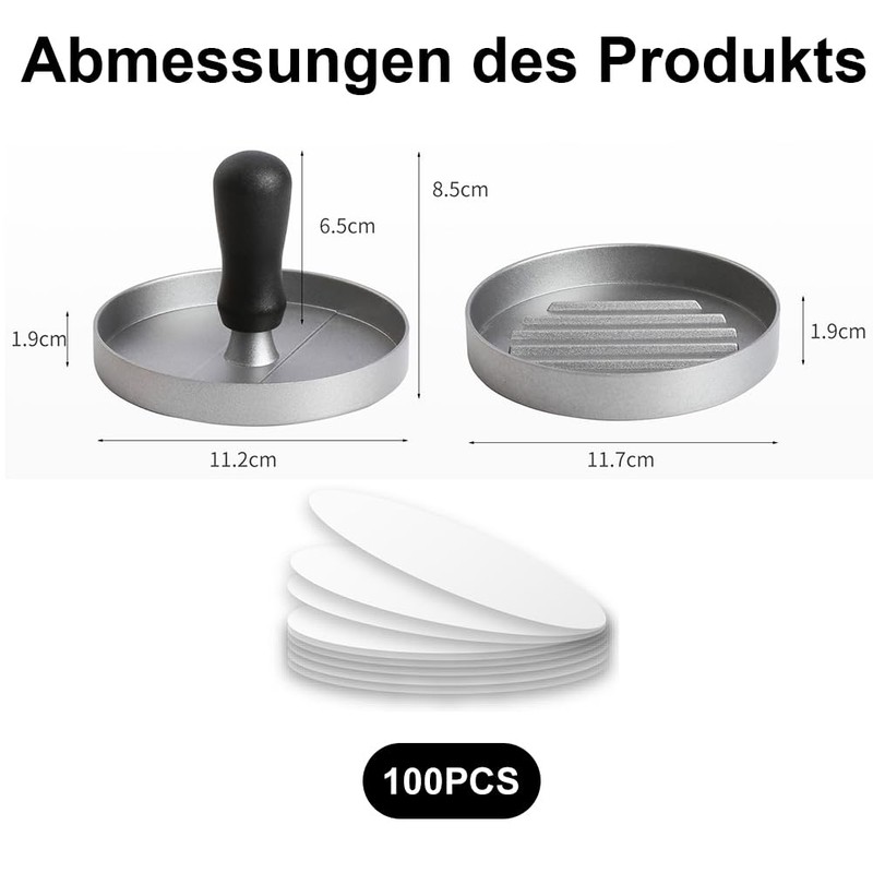 • WITH 100 PRACTICAL PATTY PAPERS The burger press comes with 100 wax paper sheets that prevent patties from sticking and allow effortless release. This set is ideal for facilitating the cooking process in the kitchen or when grilling.
