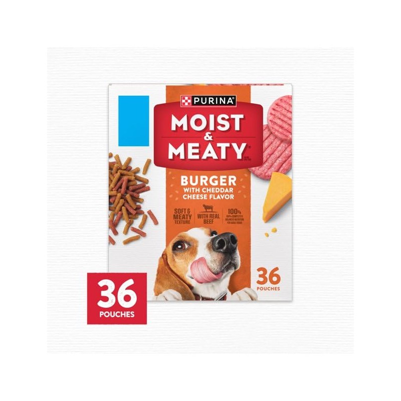 Burger with Cheddar Cheese Flavor Dry Soft Dog Food Pouches, Made with Real Beef, 100% Complete & Balanced Nutrition for Adult Dogs