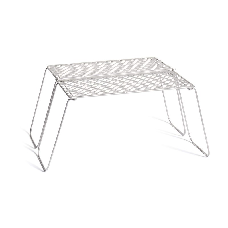折り畳み式のグリル。グリル面はハニカム状のフラットな作りになっており、使用後のメンテナンスを楽にするだけでなくミニテーブルとしても使用できます。難しい構造は使用せず、シンプルに折り畳んで収納するシステムで故障、破損のリスクを極力減らしています。シンプルながらバーゴらしさあふれるグリルです。