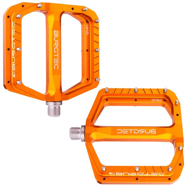 Burgtec Penthouse MK5 Flat Steel Axle MTB Pedals - Orange, Pair/Mountain Bike Wide Platform Trail Enduro Downhill Dirt Jump Freeride Cycling Part Cycle Ride Sticky Grip Pin Bicycle Component 9/16