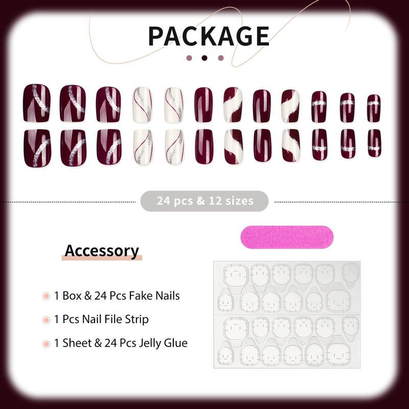 Burgundy Press On Nails