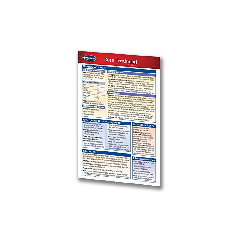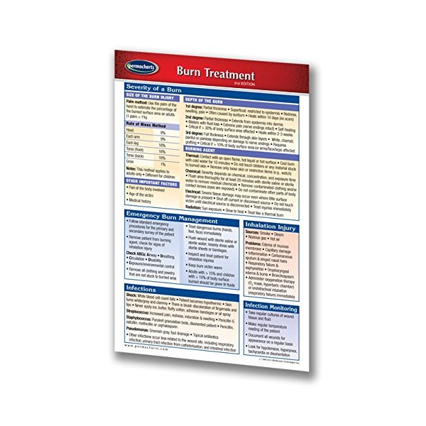 • This laminated pocket medical quick reference chart covers severity of a burn, emergency burn management, inhalation injury