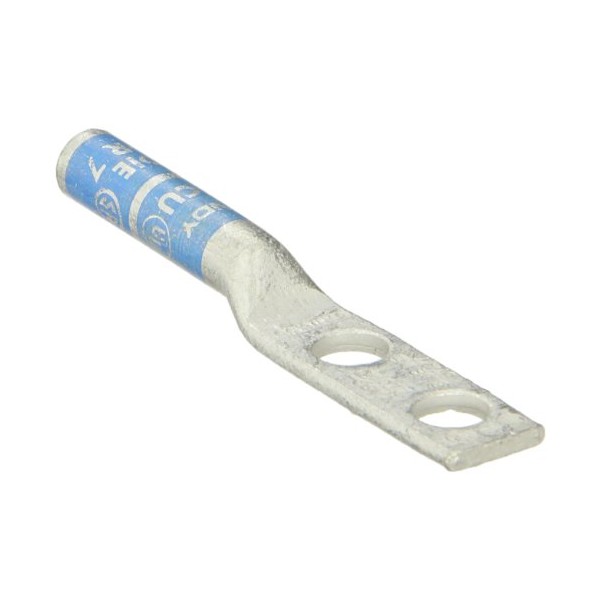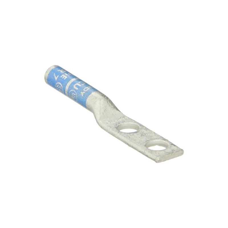 Burndy YA6C2TC14 Two Hole Hylug Code Conductor Long Barrel Copper Compression Terminal, 6 AWG Conductor, 1/4" Stud Hole Size, 5/8" Stud Hole Spacing, 0.45" Tongue Width, 2.65" Length