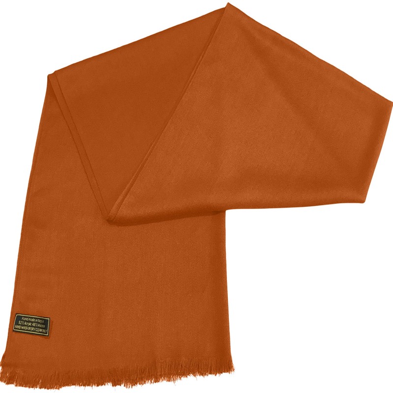 Burnt Orange Persimmon Orange Solid Colour Fringe Design Nepalese Shawl Scarf Wrap Stole Throw Head Wrap Pashmina Hand Made in Nepal CJ Apparel NEW