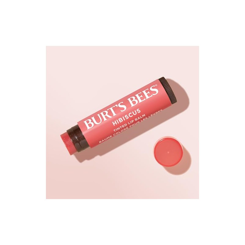 Burts Bees Tinted Lip Balm Hibiscus delivers the perfect hint of color in a warm, neutral pink tone to enhance lips for a natural everyday look. It soothes dry lips as it locks in moisture for up to 8 hours, to leave lips feeling softer and smoother. Tinted Lip Balm Hibiscus moisturizes with shea butter and responsibly sourced beeswax; and coconut and sunflower seed oils, to keep lips nourished and glowing. It has a flattering, semi glossy finish that can be applied anytime, anywhere, no mirror needed. 100% natural origin, Tinted Lip Balm Hibiscus is made with ingredients from nature, formulated without parabens, phthalates, petrolatum, or SLS, and comes in a recyclable carton. Burts Bees is Leaping Bunny Certified. *Based on a November 2023 NielsenIQ national survey of U.S. Dermatologists