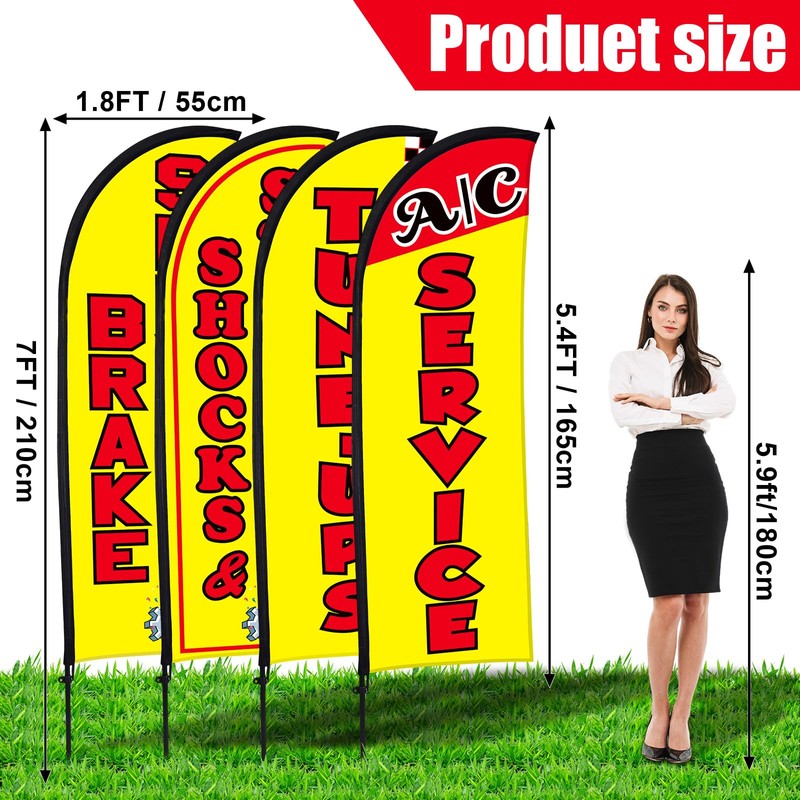 - Ideal Size: measuring about 7 x 5.4 ft/ 210 x 165 cm, these auto repair feather flags give an impressive display that is easily noticeable from a distance, helping to draw in more foot traffic