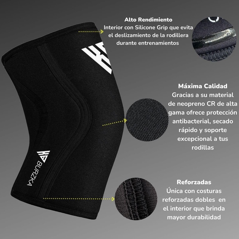 BURZKA Rodilleras Neopreno Crossfit 7 mm Levantamiento de Pesas Powerlifting Gym Compresion Apoyo Soporte de Rodillas (Negro, Grande)