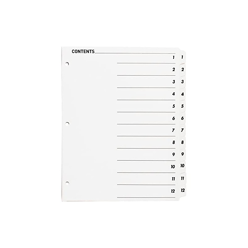 Business Source 05855 - Divisores índices con página TOC, 1-12, 12 pestañas/ST, 11 pulgadas x 8-1/2 pulgadas, color blanco