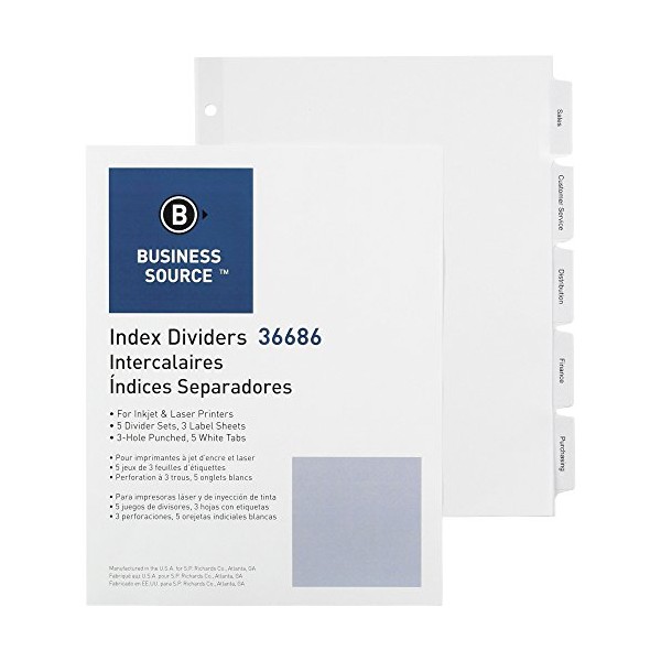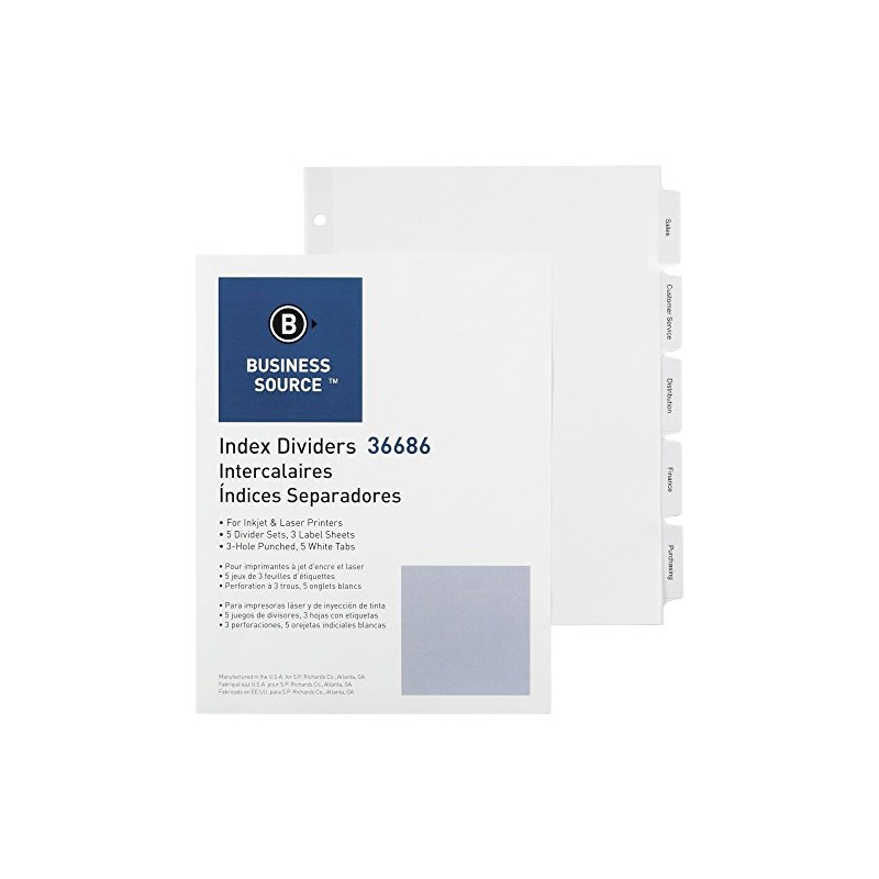 Business Source Punched Laser Index Dividers - Set of 5 Tabs - White (36686)