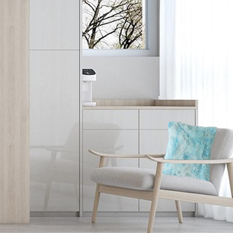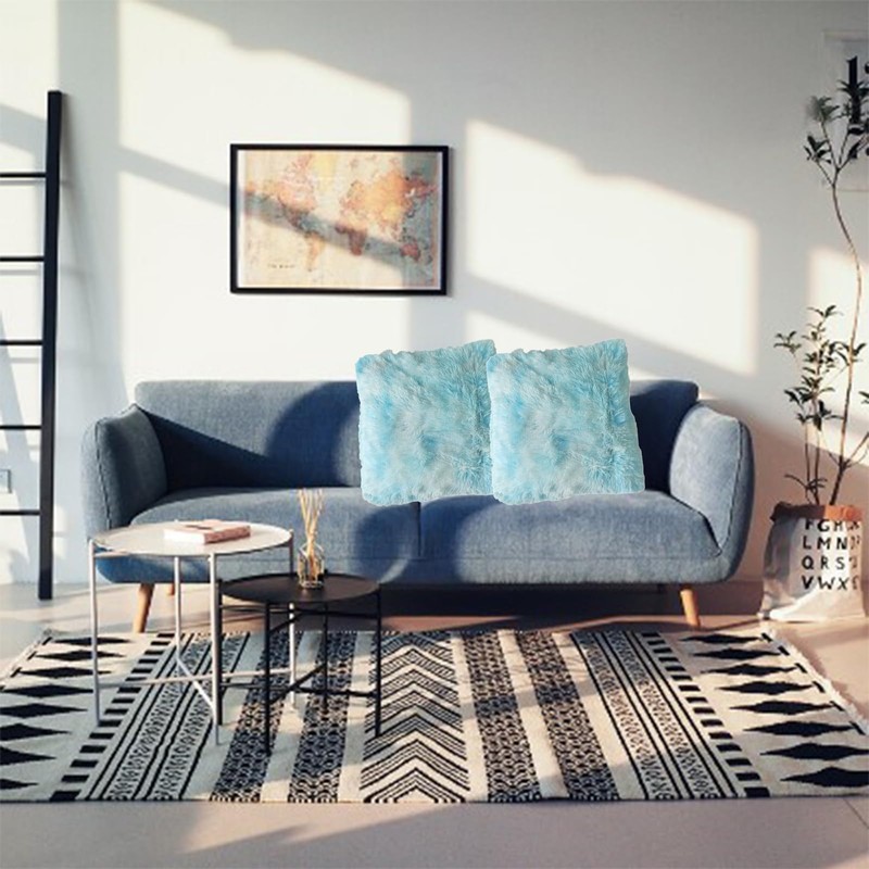 Bustlwor Pack of 2 Artificial Fur Cuddly Cushions, Faux Fur Cushion, Plush Cushion Cover with Fluffy, for Sofa, Chair, Living Room (Blue, 45 x 45 cm)