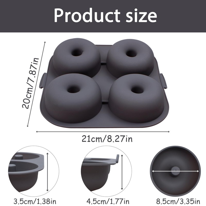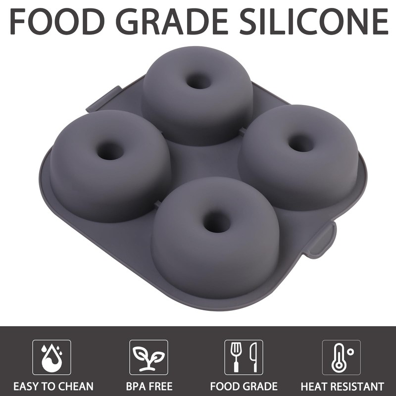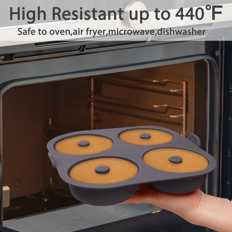 Butabeishy Silikon Donut-Backform Set, 3 Stück, 4 Mulden pro Form für Heißluftfritteusen, 21 x 20cm, Grau
