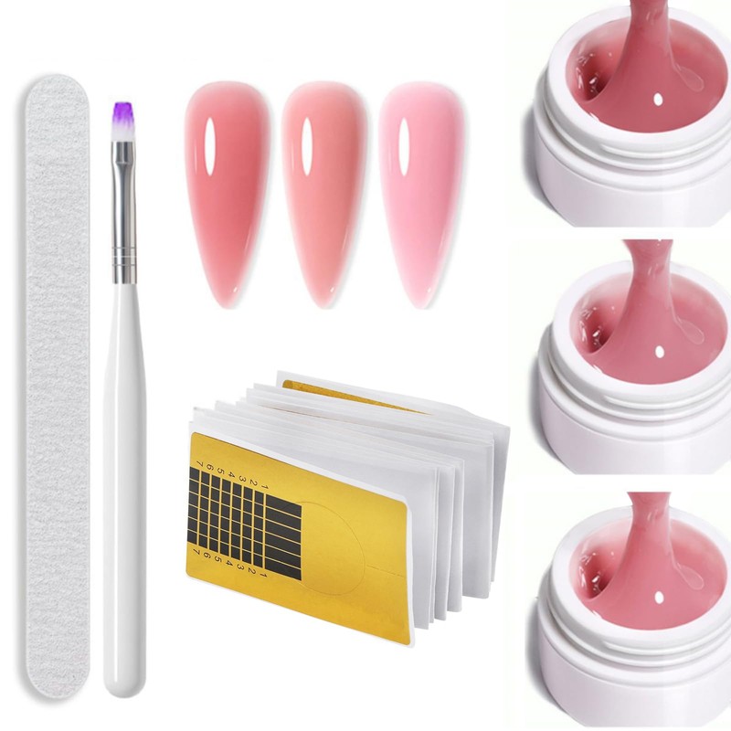 BUTBU Builder Nail Gel, 3 Colors Nail-Extension Gel, Hard Gel Builder for Nails Repair and Extensions, Inclued nail Brush, Buffer Block and 20pcs Nail-Forms (Samlon Pink, Samlon Nude, Pale Pink)