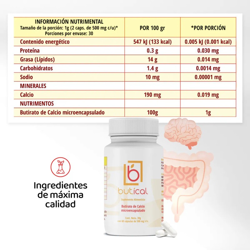 Butical Butirato De Calcio 60caps 500mg Prebiotico Posbiotic Sabor Sin Sabor