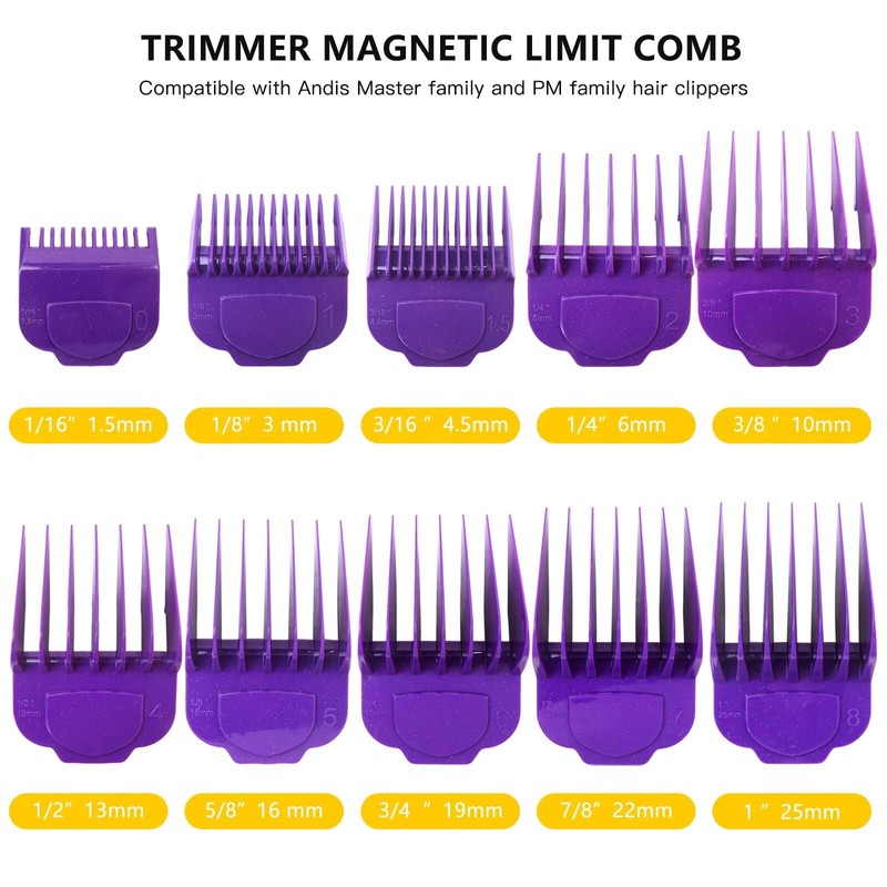 BUTITNOW for Andis Master Clipper Accessories - 10 Magnetic Cutting Guards 1/16", 1/8", 3/16", 1/4", 3/8",1/2", 5/8", 3/4", 7/8", and 1 - for All Professional Haircutting Needs