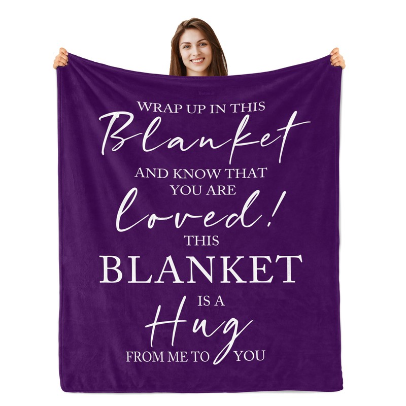 - GET WELL BLANKET: This high-quality blanket is made of ultra-soft premium polyester. After continuous innovation, the pattern has changed from the original single-sided purple to double-sided purple. If your friend or family member is having a bad day, give him or her a hug and share this blanket to show your thoughts and care. Snuggle in this super cozy fleece blanket and read the warm words printed on the blanket, "Wrap yourself in this blanket and know that you are loved! This blanket is a hug from me to you."