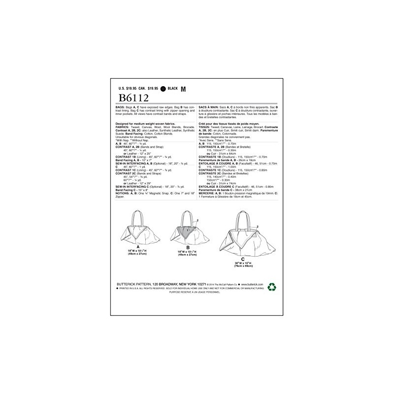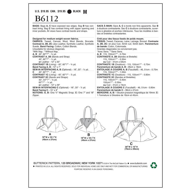 Butterick Patterns B6112 Bags, One Size Only