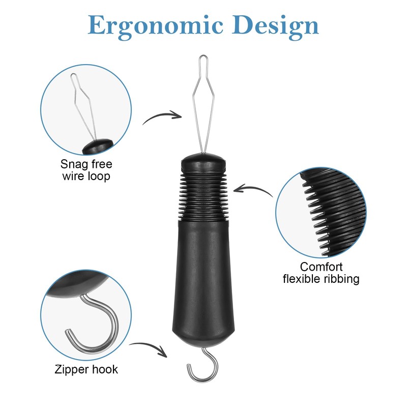 - Easy buttoning: You will receive a black button and zipper aid with a small hook for zipping and a slender iron ring for buttoning at both ends, which can effectively help you button and zip up. The small hook on one end of the aid can help you zip up effectively. The button hook is carefully designed to easily fix small, medium and large round buttons, making it convenient to quickly and easily button dresses, shirts, collars, etc.