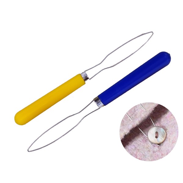 - Easily sliding through small buttonholes, the metal loop of this sewing accessory is smooth and will not snag the fabric or buttonhole threads. The metal loop narrows at the tip to lock the button in place, making pulling it through the buttonhole easier.