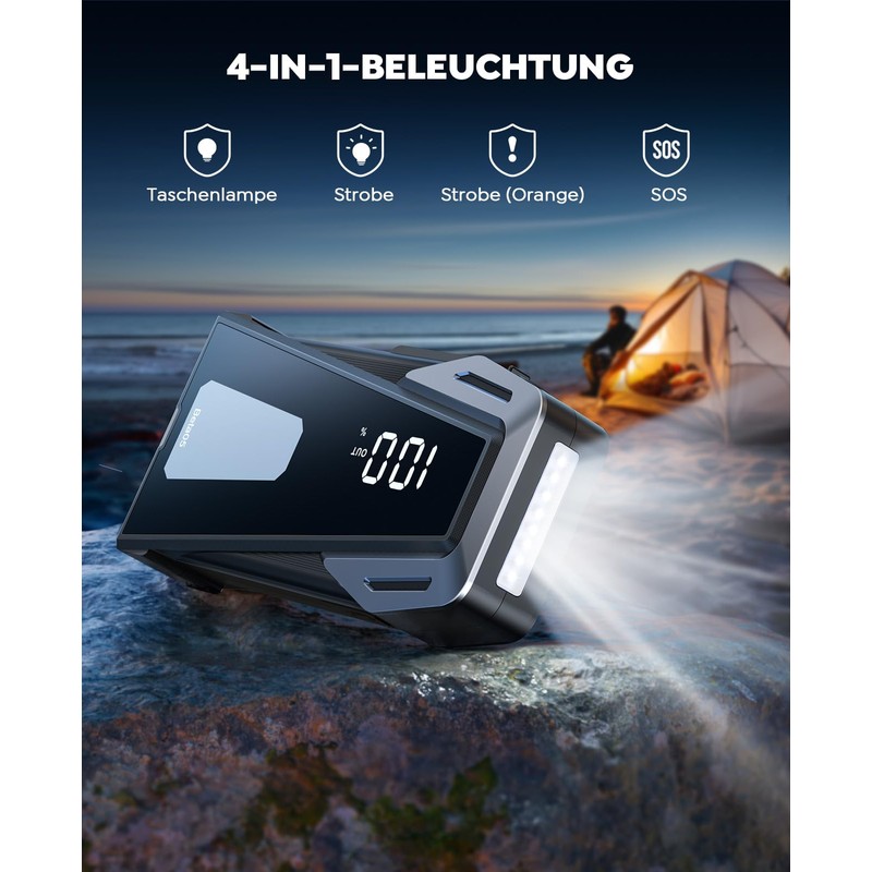 • 10 Arten Intelligenten SchutzsystemeDieses Starthilfe Powerbank mit einem intelligenten Schutzsystem, das mitgelieferte intelligente Kabel verhindert Fehler wie Kurzschluss, berhitzung, berspannung, berladung, Tiefentladung, berstrom und Rckstrom.